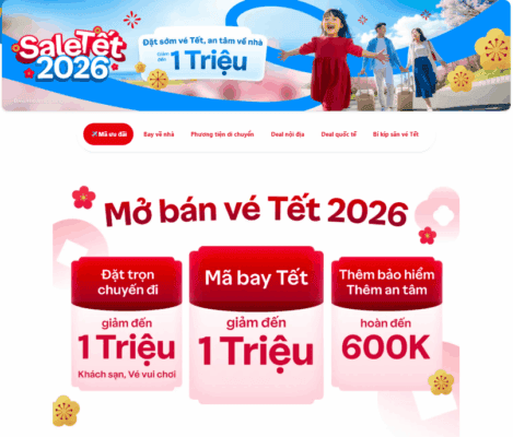 Không chỉ mang đến trải nghiệm đặt vé thuận tiện, Traveloka còn thường xuyên tung ra các chương trình khuyến mãi định kỳ với mức giảm giá cạnh tranh. Trong đó, “Flash Sale” hàng tuần diễn ra vào đầu với số lượng vé giới hạn nhưng giá vô cùng hấp dẫn. “Super Sale” hàng tháng kéo dài trong 3–5 ngày mang đến hàng nghìn vé ưu đãi và các chiến dịch đặc biệt như Black Friday, 11.11, hay 12.12 thường đi kèm mã giảm giá lên đến hàng triệu đồng cho cả vé máy bay, khách sạn và combo du lịch.